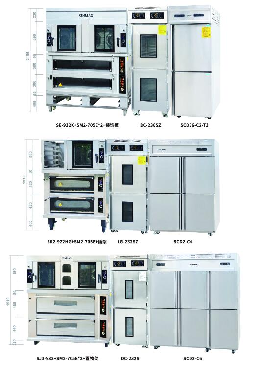 現(xiàn)烤組合(層爐+熱風(fēng)爐+架子+凍藏醒發(fā)箱+冰箱)
